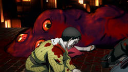 He bestows enmu with more power by giving him a large amount of his blood.